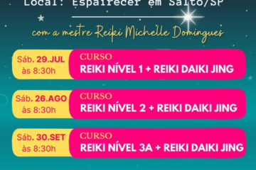 Agenda dos próximos Cursos de Reiki com a terapeuta holística e mestre Reiki Michelle Domingues na cidade de Salto *Os cursos serão com a parte prática e iniciação presencial no Espairecer Espaço luz e harmonia na cidade de Salto/SP + video aulas * *Informações:* Divina Alquimia – (19) 99750-4300 (WhatsApp) Espairecer – (11) 4456-8473 (WhatsApp) #divinaalquimia#espairecersalto#reikinivel1#reikinivel2#reikinivel3#reikidaikijing#reikiusui#curso#terapias#autoconhecimento#gratidão#reiki#energia#salto#indaiatuba#itu#campinas#autoconhecimento#autocuidado